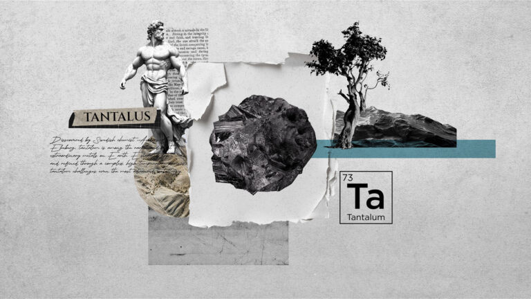 The animation layers collage styled elements to evoke both science and mythology. Archival-style designs and old metallurgical sketches sit alongside textures of ore, photographs , sketches and handwritten scientific notations.